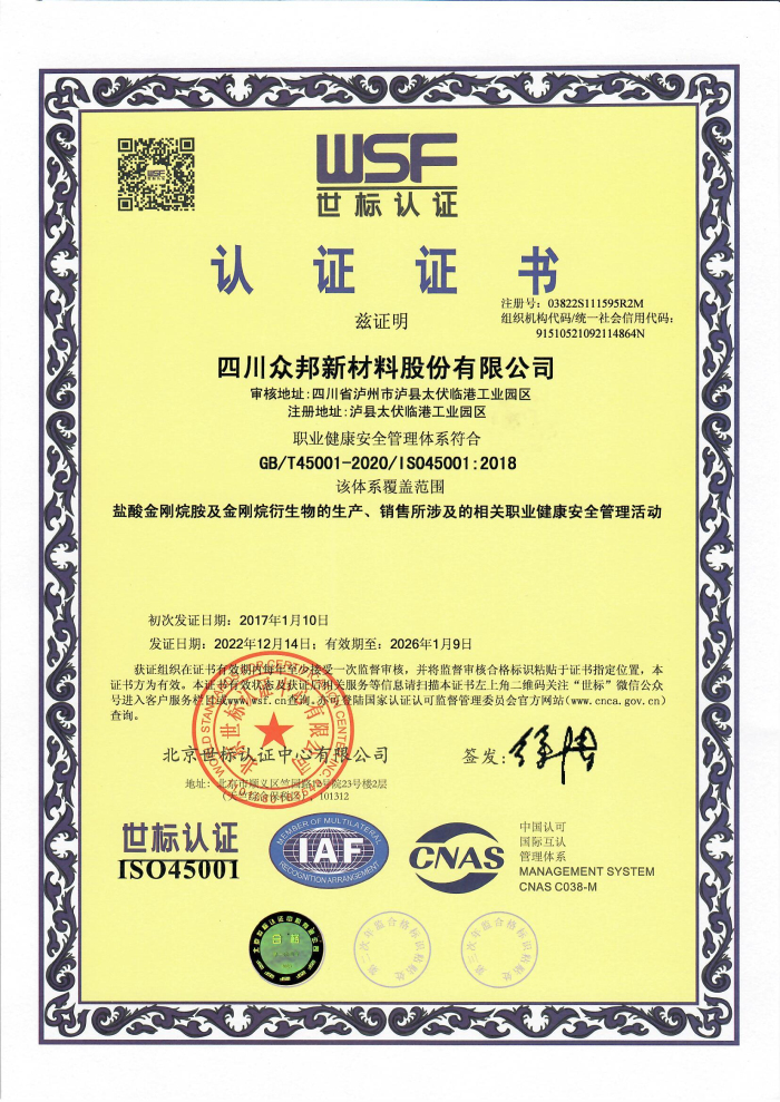 職業(yè)健康安全管理體系認(rèn)證證書(shū)